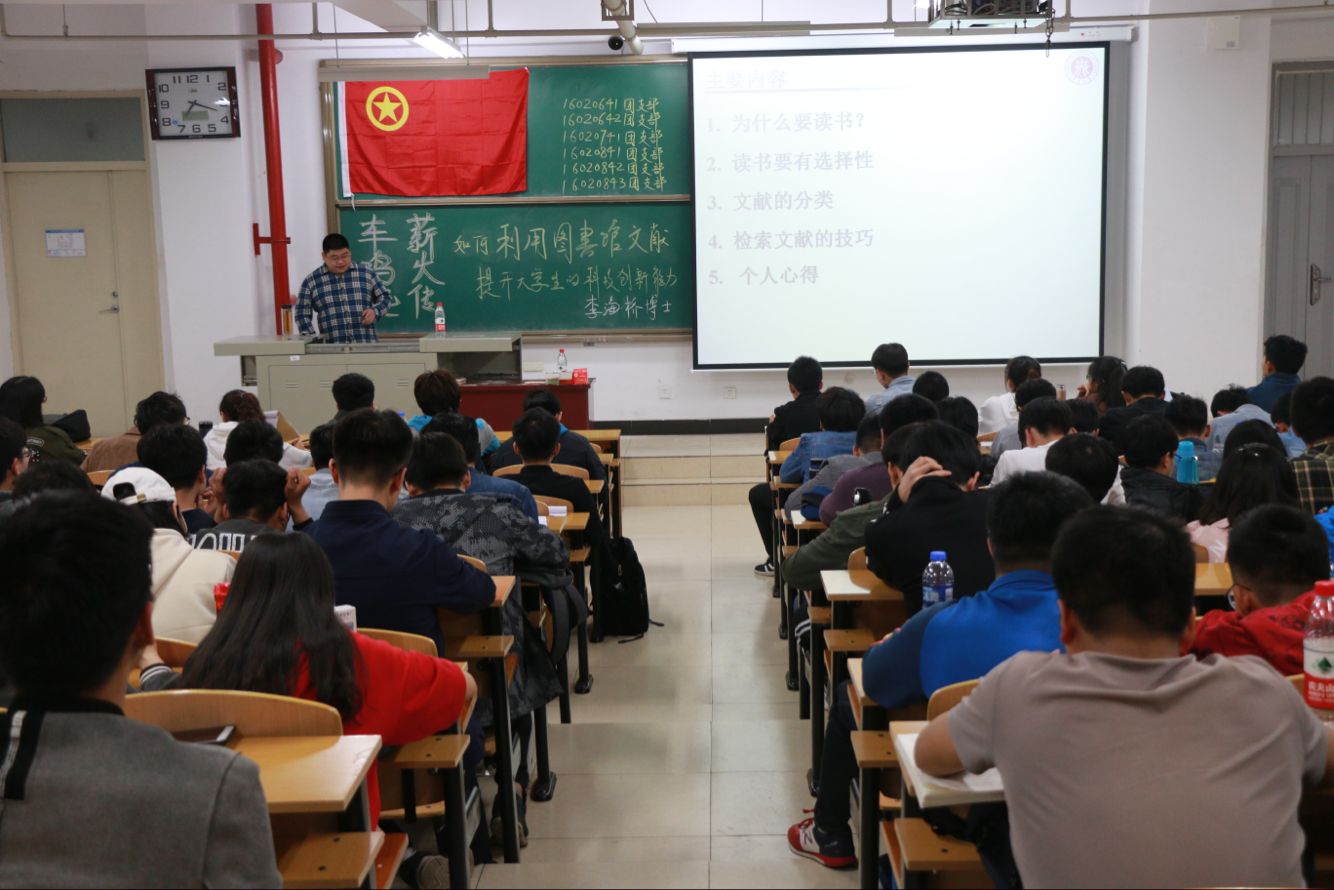 本次团日活动以“车鸣起,薪火传”为主题,李海桥博士介绍了图书馆使用技能、科研期刊和各大数据库所收录文献的具体检索方式,强调期刊的发表和查询。鼓励同学们合理利用图书馆资源,博览群书,扩展视野。通过李海桥博士的演讲,大家感受到了提高学习能力的信念。给同学们带来了积极的影响,图书馆使用技能使同学们充分了解图书馆相关文献资源和信息服务平台,提高了科学、有效地搜集和利用文献资源的技能,增强了学生的学习兴趣。