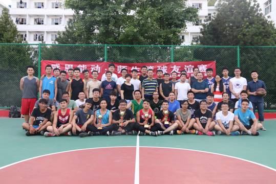 在全场的欢呼声和尖锐的哨声中拉开师生篮球友谊赛的序幕。首先是教师队与研究生队的对战,巧妙的借位,精彩的上篮,展现了学生和老师们的精湛球技和运动精神。随后是毕业生队与本科生队的比拼,全场的热情一度高涨,爆发出阵阵热烈的掌声。院长刘汉涛老师还为参加感恩杯的四支毕业生队伍进行了颁奖,鼓励他们全力以赴,在毕业之际,为自己的青春绘出的激情与无悔。同时,赵永娟书记也表示对毕业生的美好祝愿和殷切祝福。