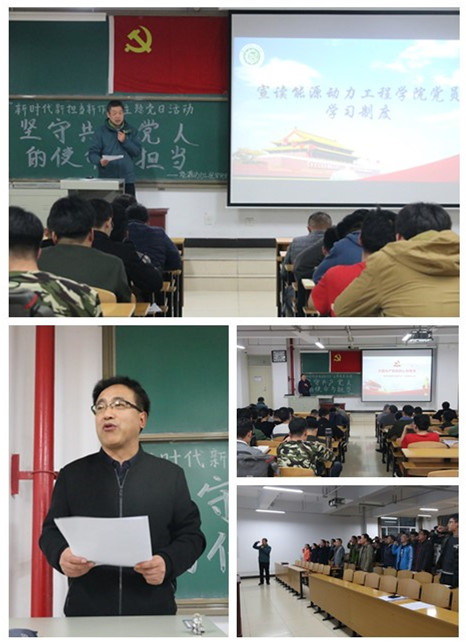 本次党日活动以“新时代、新担当、新作为”为主题,以“坚守共产党人的使命与担当”为主旨,把深入学习宣传贯彻党的十九大报告和全国教育大会上的讲话精神作为一项重要政治任务。会上,王爱成老师为我们作了精彩深刻的演讲报告。他在报告中主要指出了马克思主义中国化的最新成果、新时代坚持和发展中国特色社会主义的指导思想、中国共产党人必须深刻领会和严格遵循的行动指南三点内容,为在场的党员上了一堂深刻的思想教育课。随后院长刘汉涛宣读了能源动力工程在线老虎机