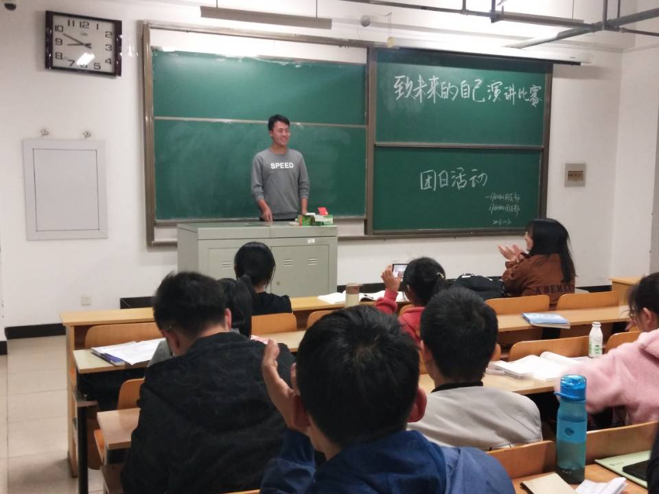 团支部以宿舍为单位分为团支部小组,由各小组组长协调时间,观看了团十八大视频,各个小组之间也互相分享了心得,大家对团十八大也有了更详细的了解。2018年11月01日 ,171160343团支部与17160344团支部共同于15201举办了“致四年后的自己”演讲比赛,大家积极上台演讲,规划未来四年大学目标,畅谈人生梦想。这次演讲提醒了团支部成员要珍惜时间、找准未来的方向,找到自己的动力,不断朝自己的目标奋斗向前。11月3日,1716034支部在六号楼门口集合,进行了爬崛围山的活动,大家一路上欢声笑语,并都爬到了山顶。在山顶,团支部成员进行了对太行精神的分享交流,加深了对太行精神的理解。