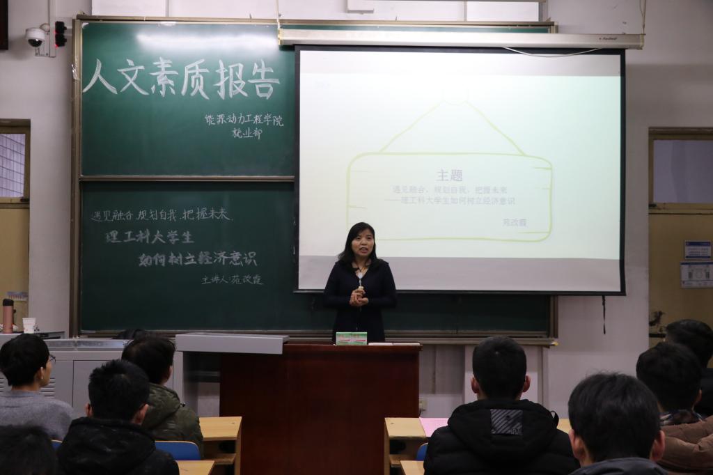 在11207举办了主题为“遇见融合,规划自我,把握未来—理工科大学生如何树立经济意识”知行讲坛。本次讲座邀请到山西财经大学苑改霞教授为同学们进行讲授。