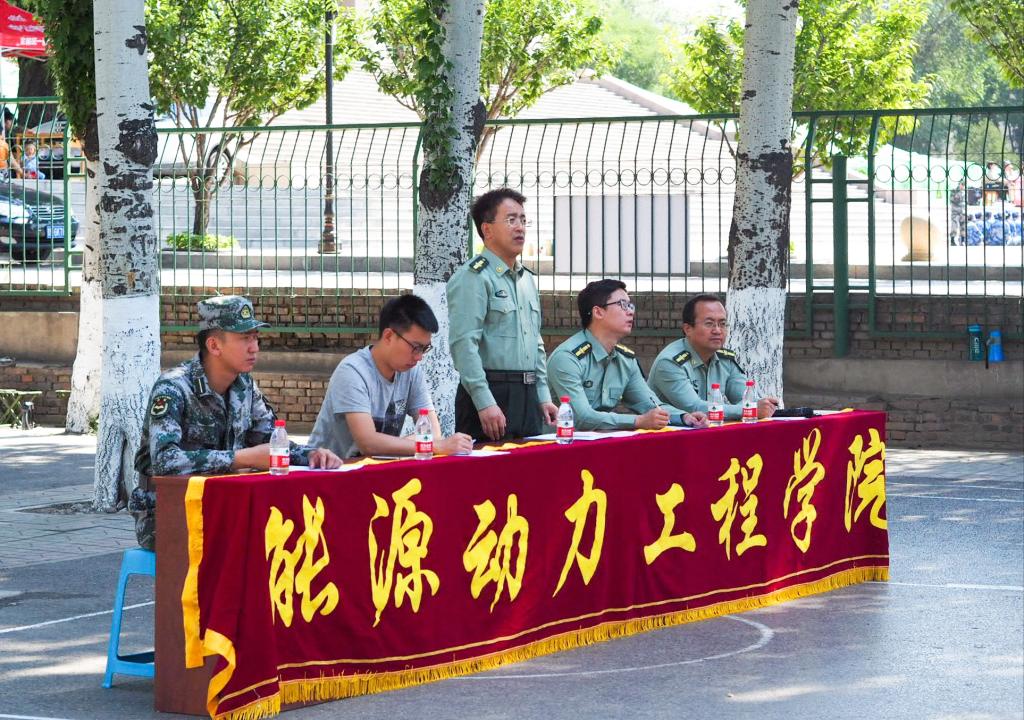 于7月14日上午9点在旧西区篮球场组织了2018级学生军训队列考核检阅。出席本次考核检阅的嘉宾有院党委书记李运芝、学生科副科长李清岩、辅导员乔洋、研究生辅导员杨勇、16院副营长李飞。