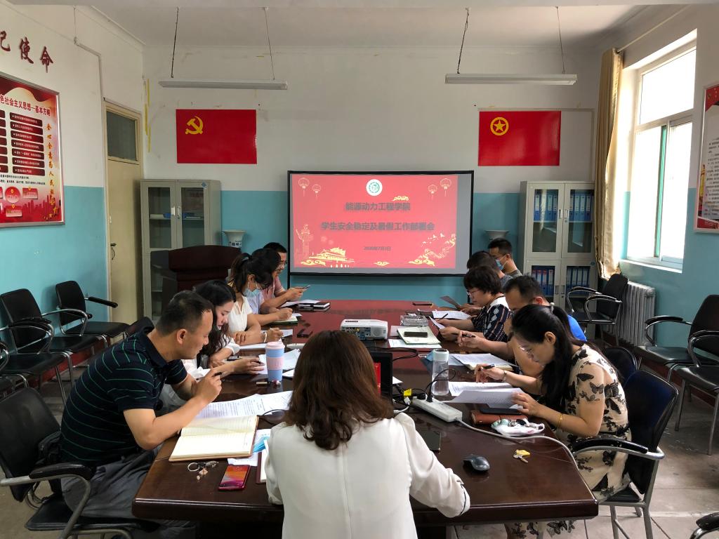 于诚学楼201会议室召开本学期学生安全稳定及暑假工作部署会,全院辅导员、各班班主任一同参加。