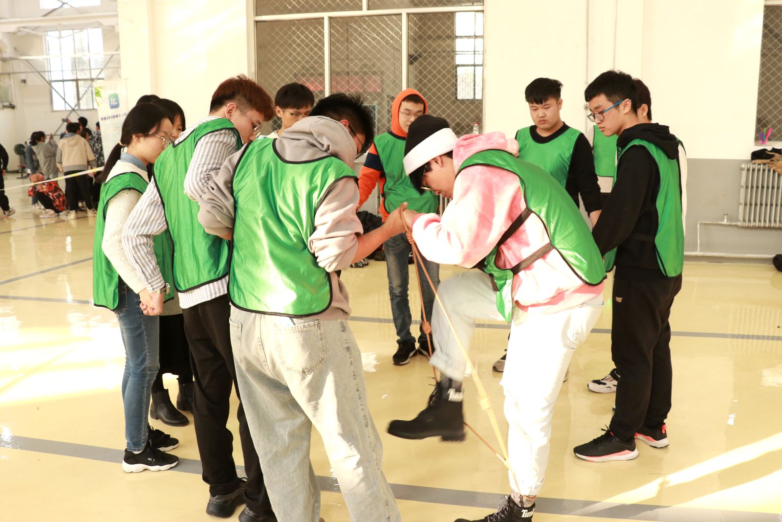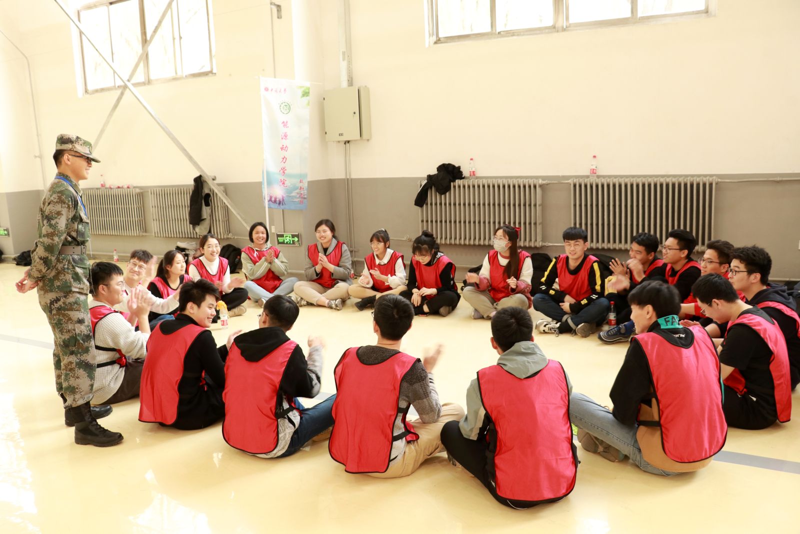14日上午,学生骨干们在教官的引导下集合完毕。首先, 进行“抓手指”与“几个人来了”热身活动,别有生趣的游戏迅速活跃了学生骨干参与团建的气氛。