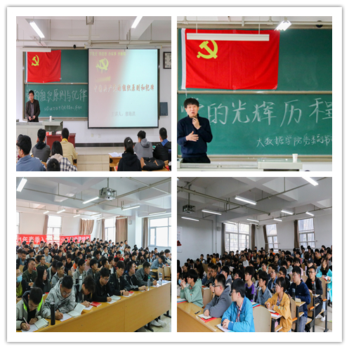 党委副书记兼副院长杨晓东以《党的光辉历程》为题,他鼓励广大同学站在民族生存发展的历史高度认识党的先进性,自觉站在党旗下,接受党组织的教育和培养,以实际行动争取早日加入党组织。