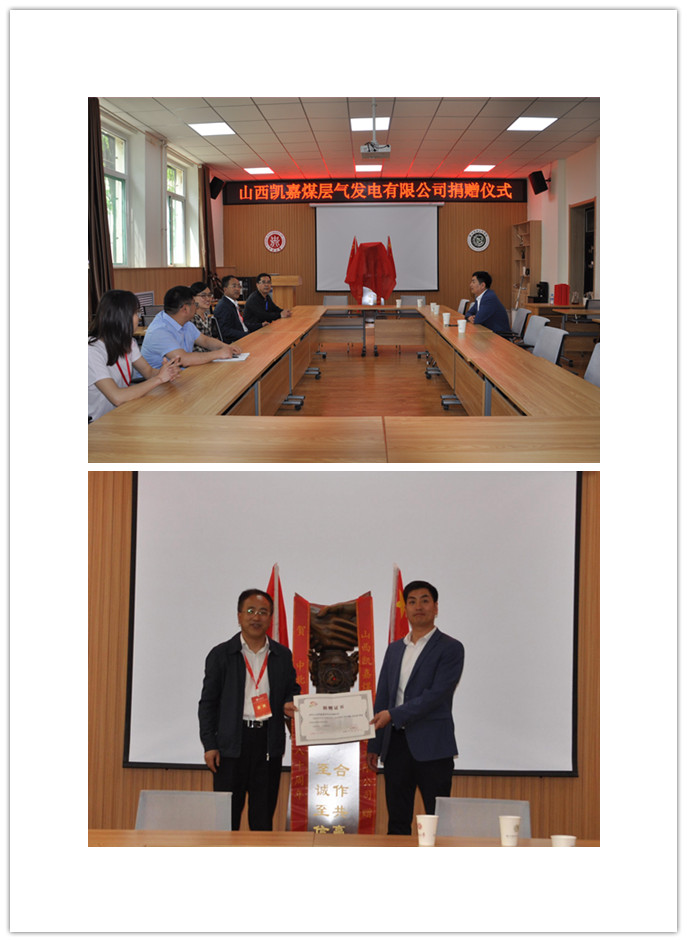5月19日上午,山西凯嘉煤层气发电有限公司张志飞总经理为学校捐赠“合作共赢,至诚至信”的木雕摆件。山西凯嘉煤层气发电有限公司与免费在线老虎机平台