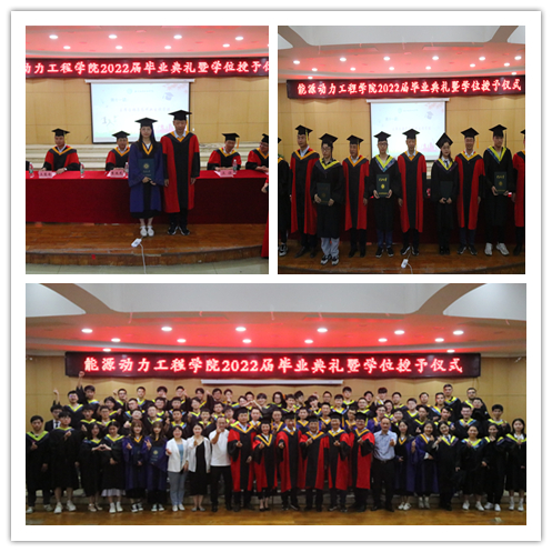 关于授予2022届毕业生赵雅婧等239名同学学士学位的决定》,主席台领导向全体毕业生逐一授予学位并合影留念。