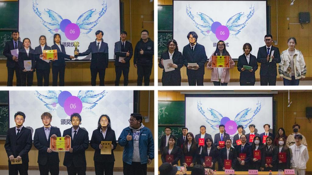分别为冠亚季殿军队伍和最佳辩手颁奖,为各位辩导颁发聘书。获得冠亚季殿军的队伍依次为:22160402班、22160401班、22160405班、22160404班。荣获最佳辩手称号的同学有:22160402班赵创,22160401班王威如、李昱辉,22160405班谭家钰,22160404班焦建东。并为李雨荷、薛如心、刘隽昕、李明哲、江海、徐耀、刘建兴、韩璐爽、王悦等颁发最佳辩导聘书,为黄芷琪、张亚丽、孟媛媛、向远航、吴运前、李豪颁发优秀辩导聘书,为辩论队领队杨艺薇,副领队张雨婷颁发领队聘书。最后在热烈的掌声中,本次比赛缓缓落下帷幕。