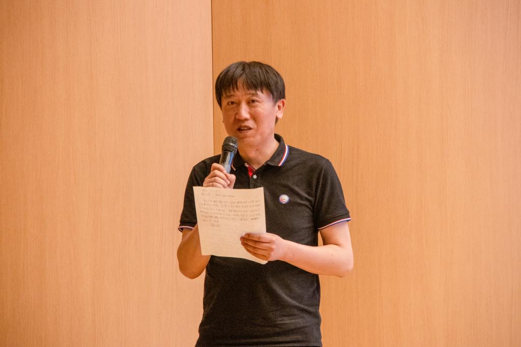 党委副书记兼副院长杨晓东老师对辩手们的精彩表现进行点评,他表达了对“春华杯”的感情和祝福,肯定了辩手们的优秀表现,同时,也举例说明如何能够更好地加强论点,展现辩论的风采。