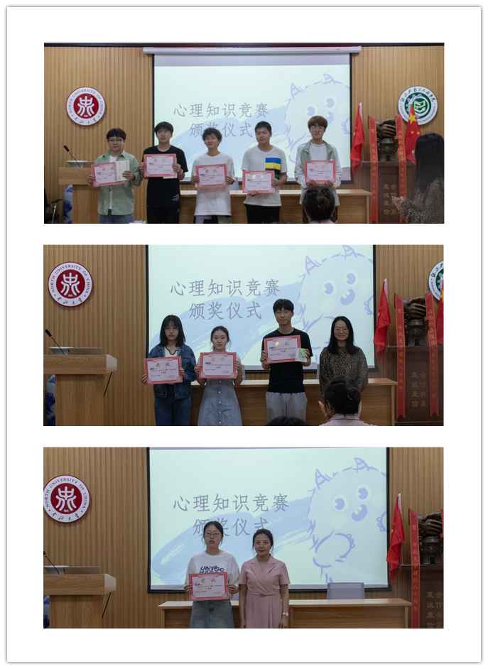 2023年心理健康月活动方案》,开展心理知识竞赛,宣传、普及心理健康知识,参与人数达500余人,最终评选一等奖1名,二等奖2名,三等奖3名,优秀奖5名;开展21天自我观照打卡活动,增强学生自我觉察、自我认识能力,参与人数达100余人。
