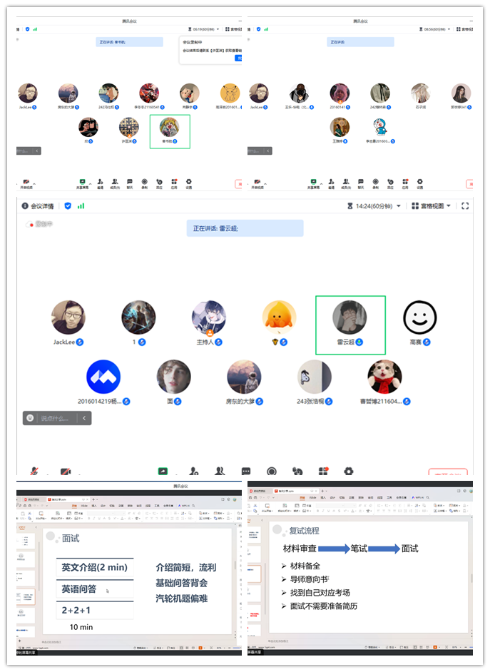 分享会上,来自长安大学的雷云超、高赛,华北电力大学的王雅婷、王乐,武汉理工大学的秦书航、谢欣宇,结合他们自身经历,从备考规划、时间管理、专业学习、复习方法和心态调整等多个方面进行了深入的分享。同时,针对备考过程中可能遇到的困难和挑战,也给出了实用的建议和解决方案。