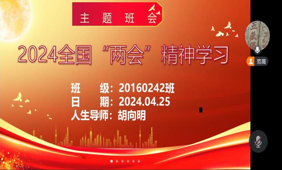 人生导师于2024年4月10日-4月25日采用线上线下相结合的方式深入本科生班级,开展学习2024全国“两会”精神系列主题班会。