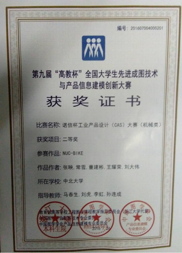 先进成图技术与产品信息建模创新大赛个人二等奖