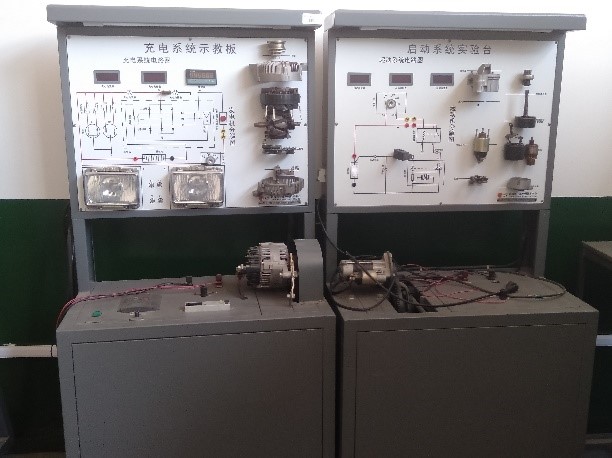 发动机电控实验室拥有启动系统实验台、充电系统实验台、柴油车电器实训台、汽车电器综合实训台、发动机点火系统示教板、汽车电子电器万能检测试验台、发动机电器实训台等设备,总价值40多万元。主要服务于发动机电控技术等课程实验教学任务。