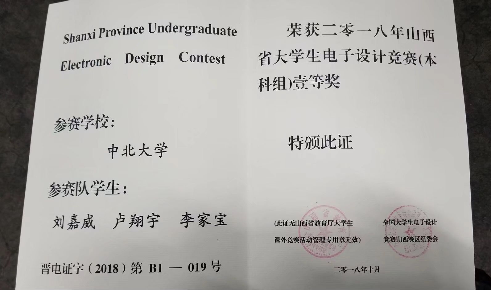 2018年山西省大学生电子设计竞赛(本科组)一等奖